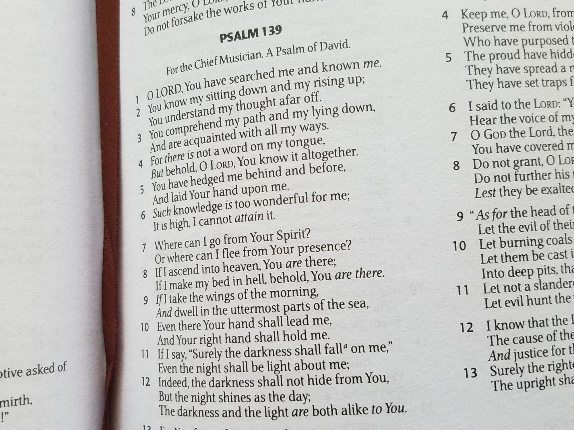 Yes, I will listen to the many speakers and sermons. But more than that I wanted to come apart. So I am giving it a try. I started this morning reading Psalms 139. It is one of my favorite chapters. It is hard to grasp the concept God knew me before I was even born. Before I was thought of, He knew me. And He even thought the world needed one of me. I arrived as a baby already loved by God and now, am still loved by God. He forgives when we ask and forgets our sins. Always He is there loving us.