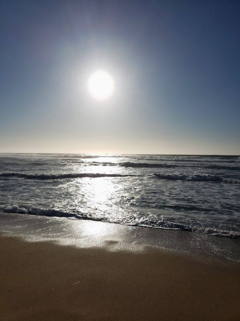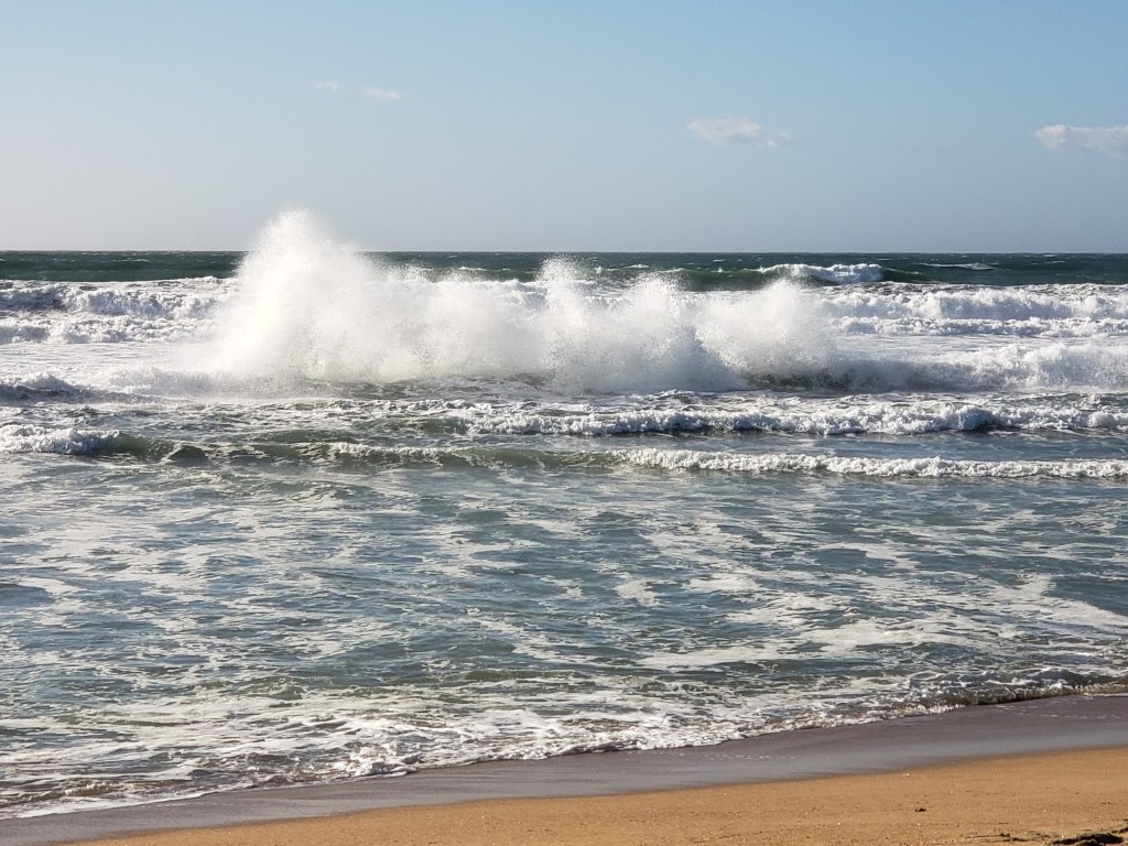 The first view of the ocean is spectacular! The wind is whipping the waves. I can stand there spellbound from the sights and sounds. And all of it is courtesy of a windy day. Lisa and I continued on to the beach though.