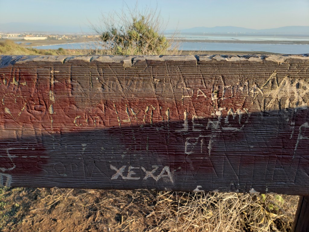 While searching for the “spot” I noticed this. This board in the safety rail where many people before had left their their marks. And it set me to thinking.