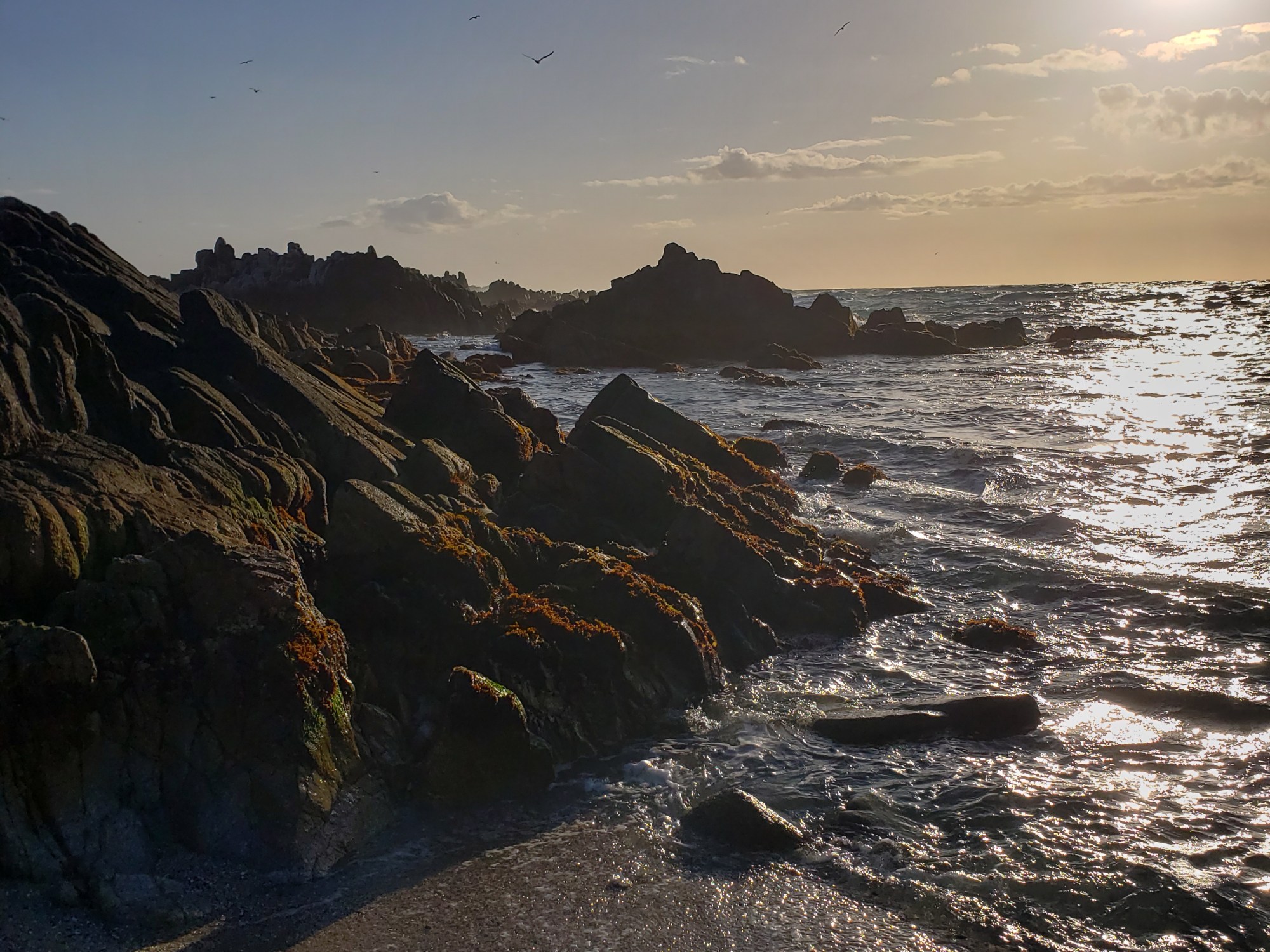 It was also a cold day here. Cold for California anyway. Lisa and I each had four layers of clothes and coats on. We sat outside on the beach for an hour or maybe two. The one thing I noticed was no matter how the wind and waves came ashore the rocks never moved. They were the one immovable thing in all the tumultuous sea.