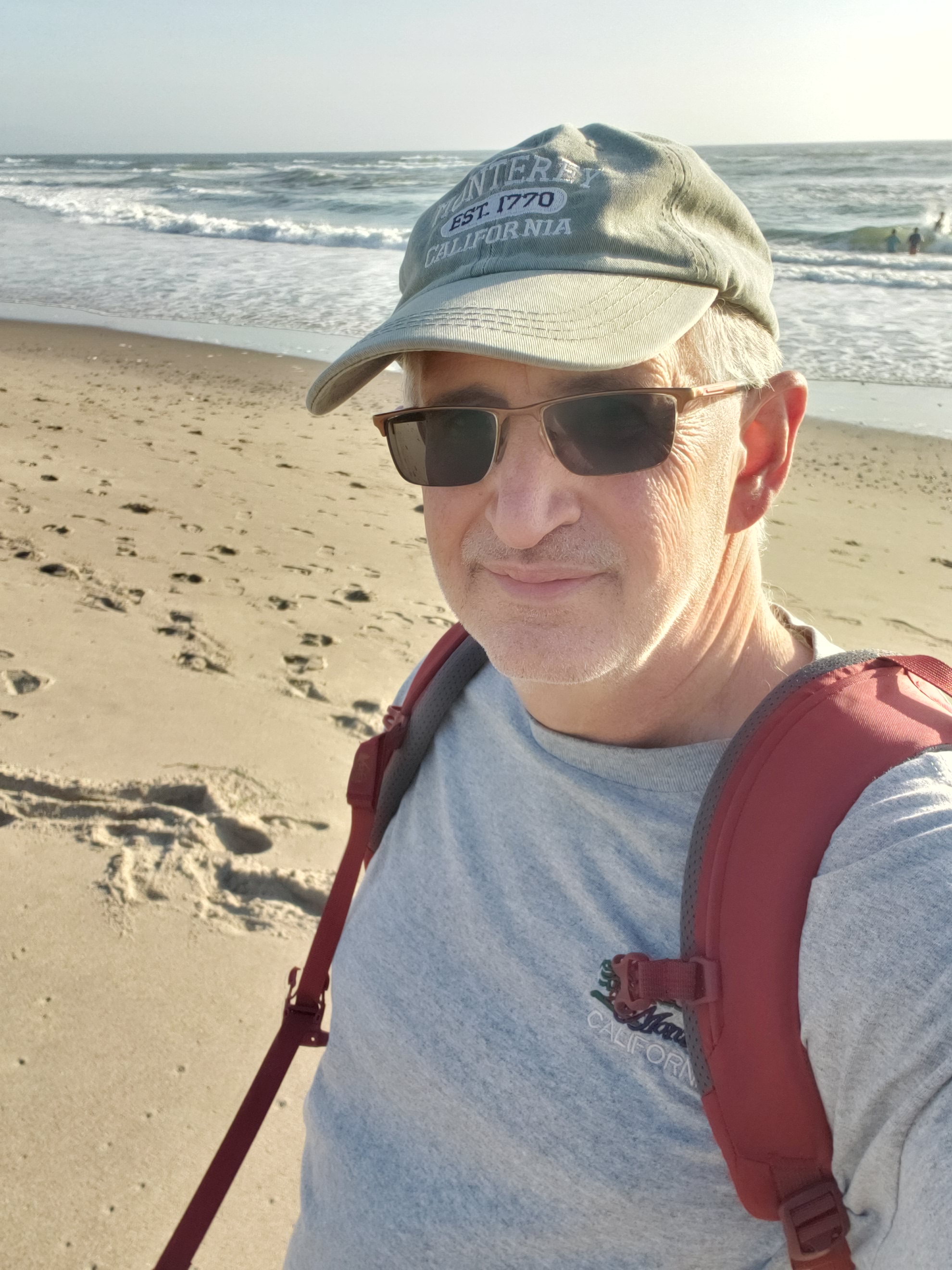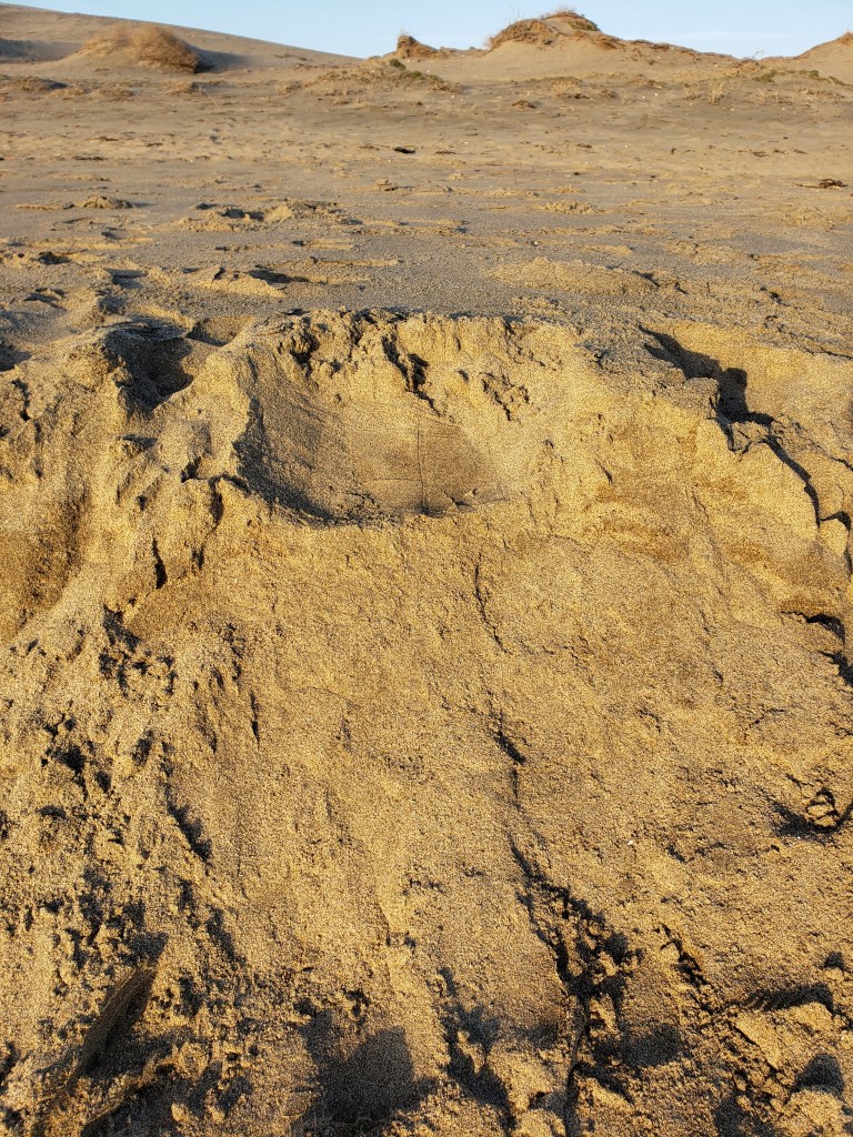 I wait for the time to be close to sunset and I can start my video! By then the beach will be almost deserted. There is fog creeping up the beach. Hoping it holds off till after the sunset…
