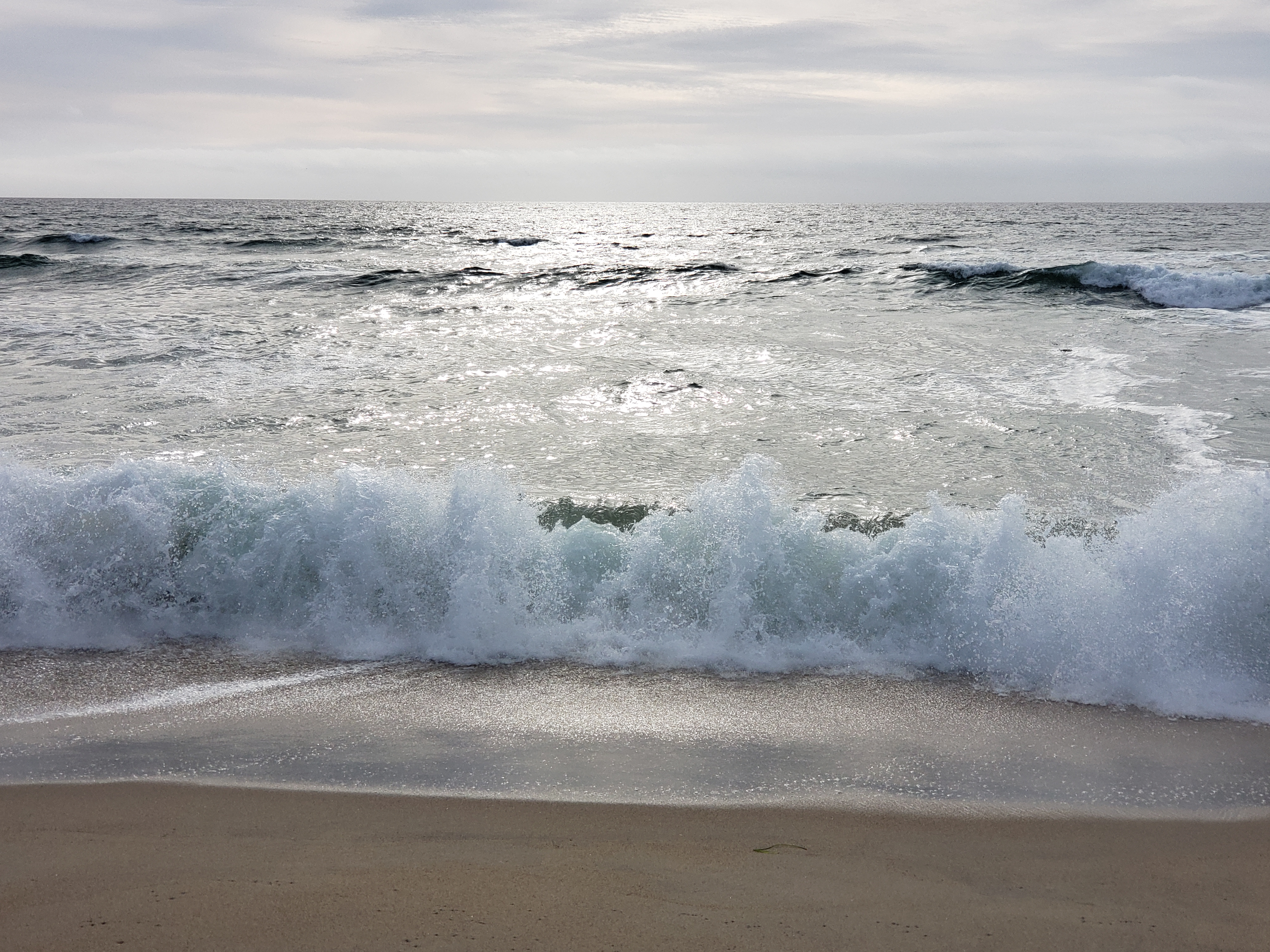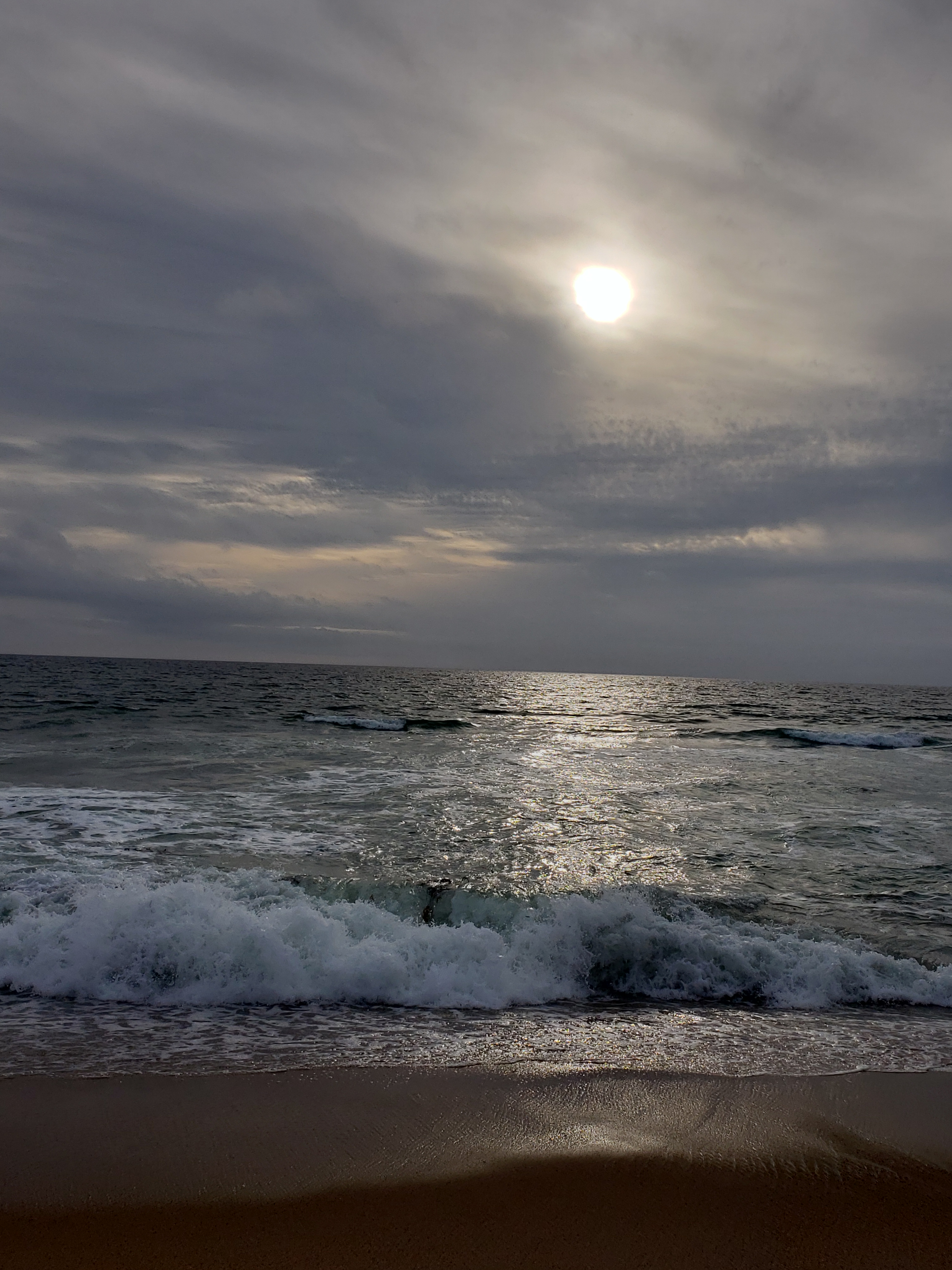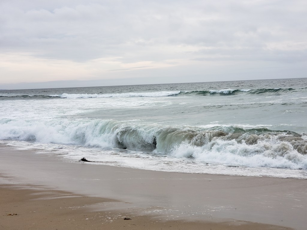 I planned to do my usual and share the sunset through a Facebook live video. The waves seemed to be getting larger, too, as the evening progressed. Then just a few seconds after I started my video, a big wave came in and water came all the way up to where I was standing. I scrambled up the little sand cliff just before the water reached me. I had to run for higher ground. I was safe on higher ground. It did make a funny bit of video though. It was a few seconds of watching the sand as I climbed up higher. From the higher ground, I finished my video without further incident.