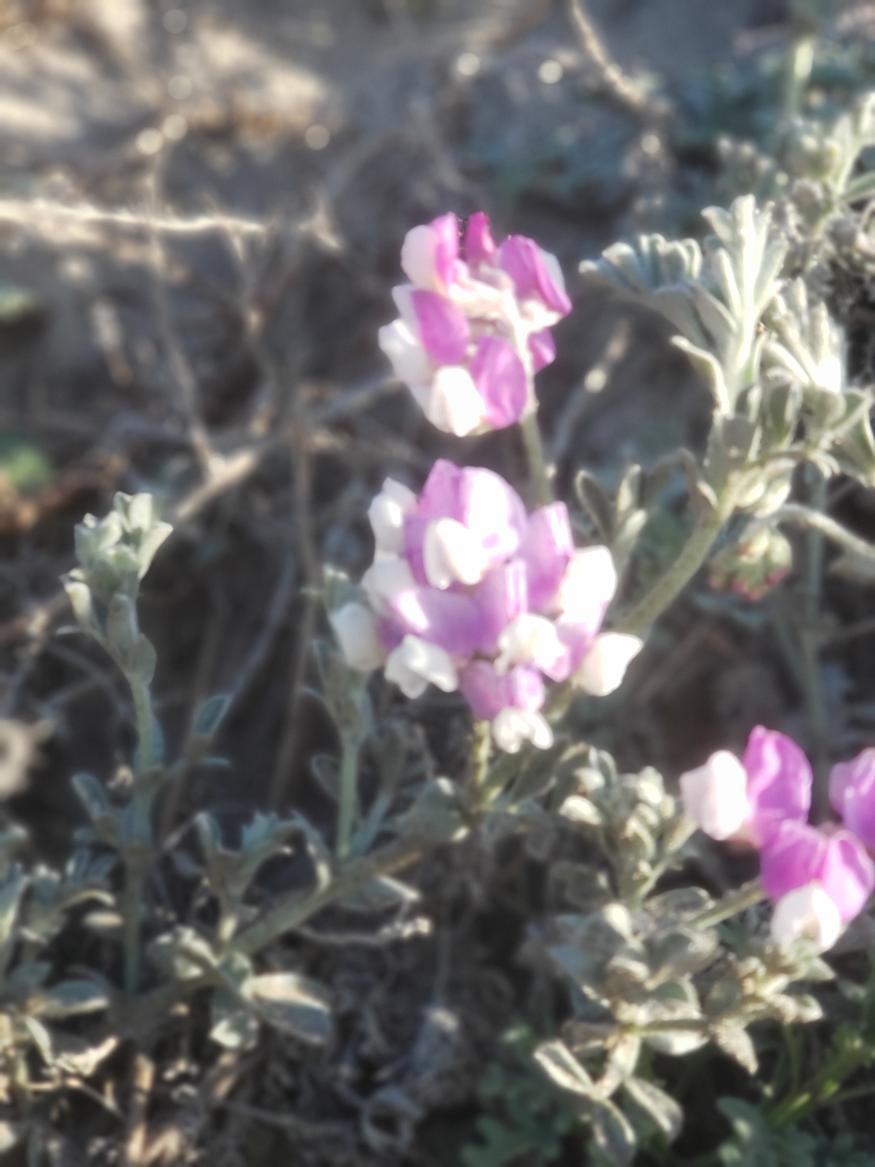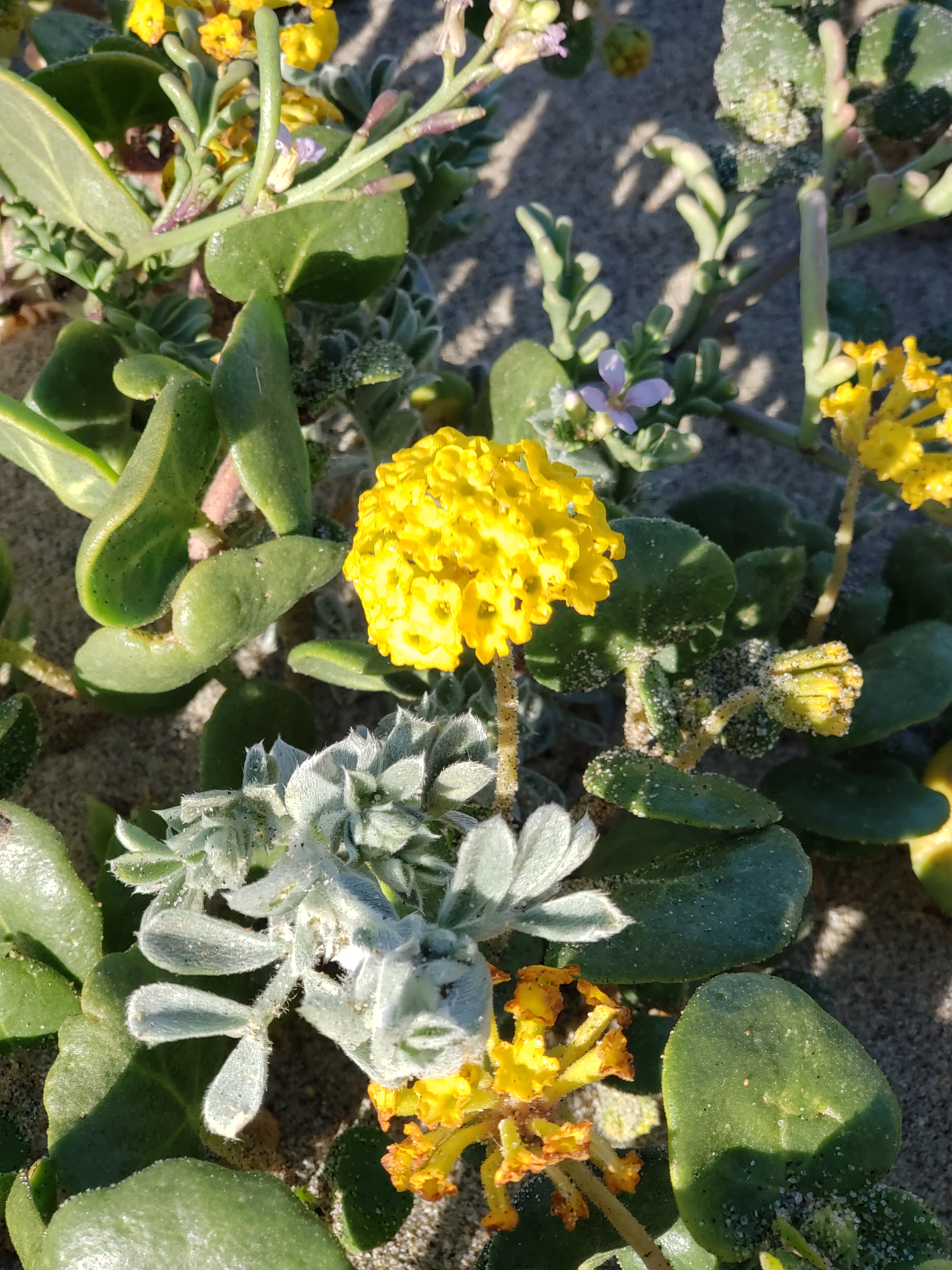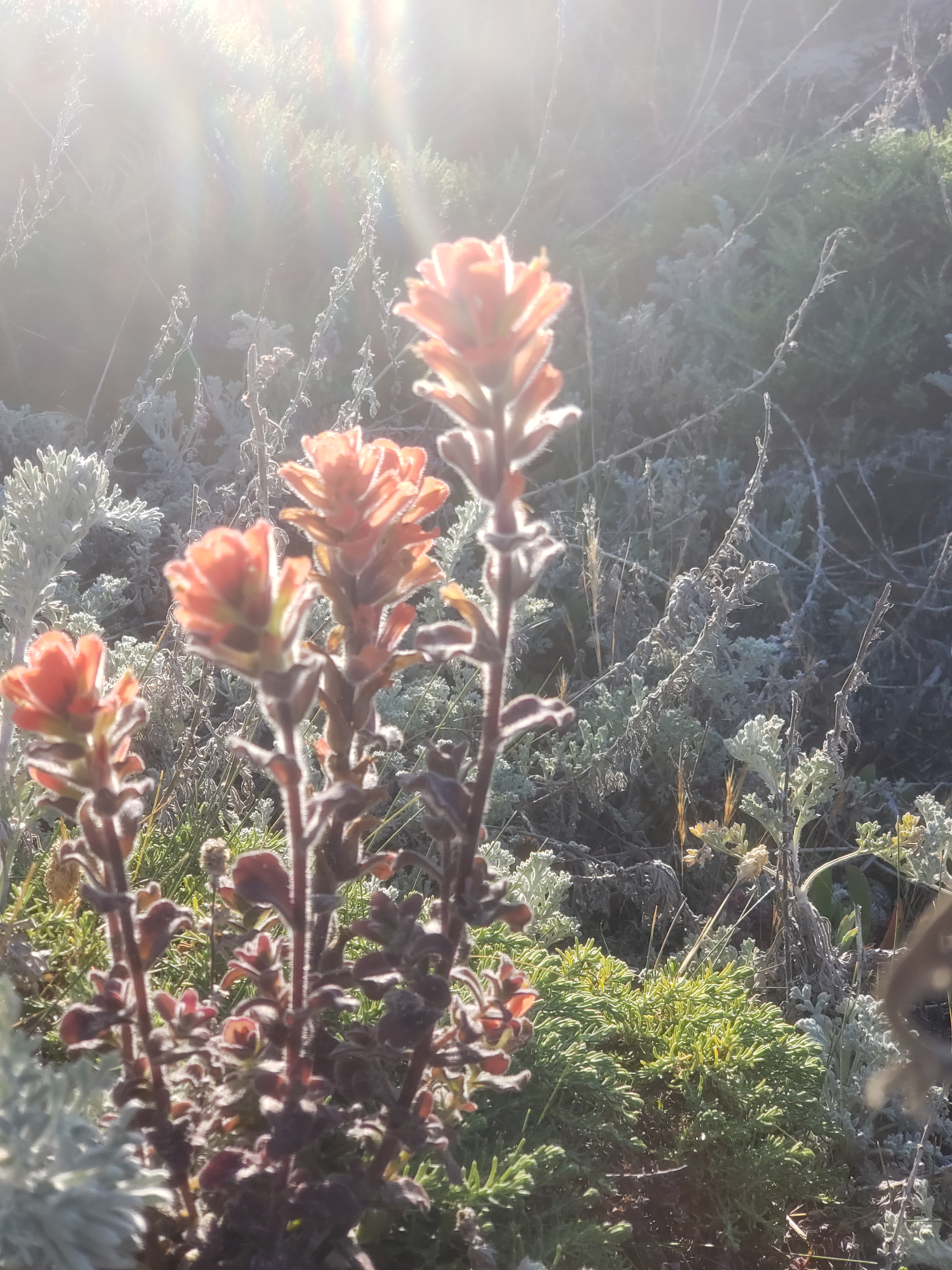 A short walk to the beach turns up a myriad of small, pretty flowers. I stop and take their pictures. Coming over the last rise and I see the ocean and feel the wind hitting me. My pants are flapping like a flag on a pole in a brisk wind. My glasses after only a couple minutes on the beach are useless. They are covered with sea spray. And so is my phone which is also my camera…but I think the pictures came out good anyway.