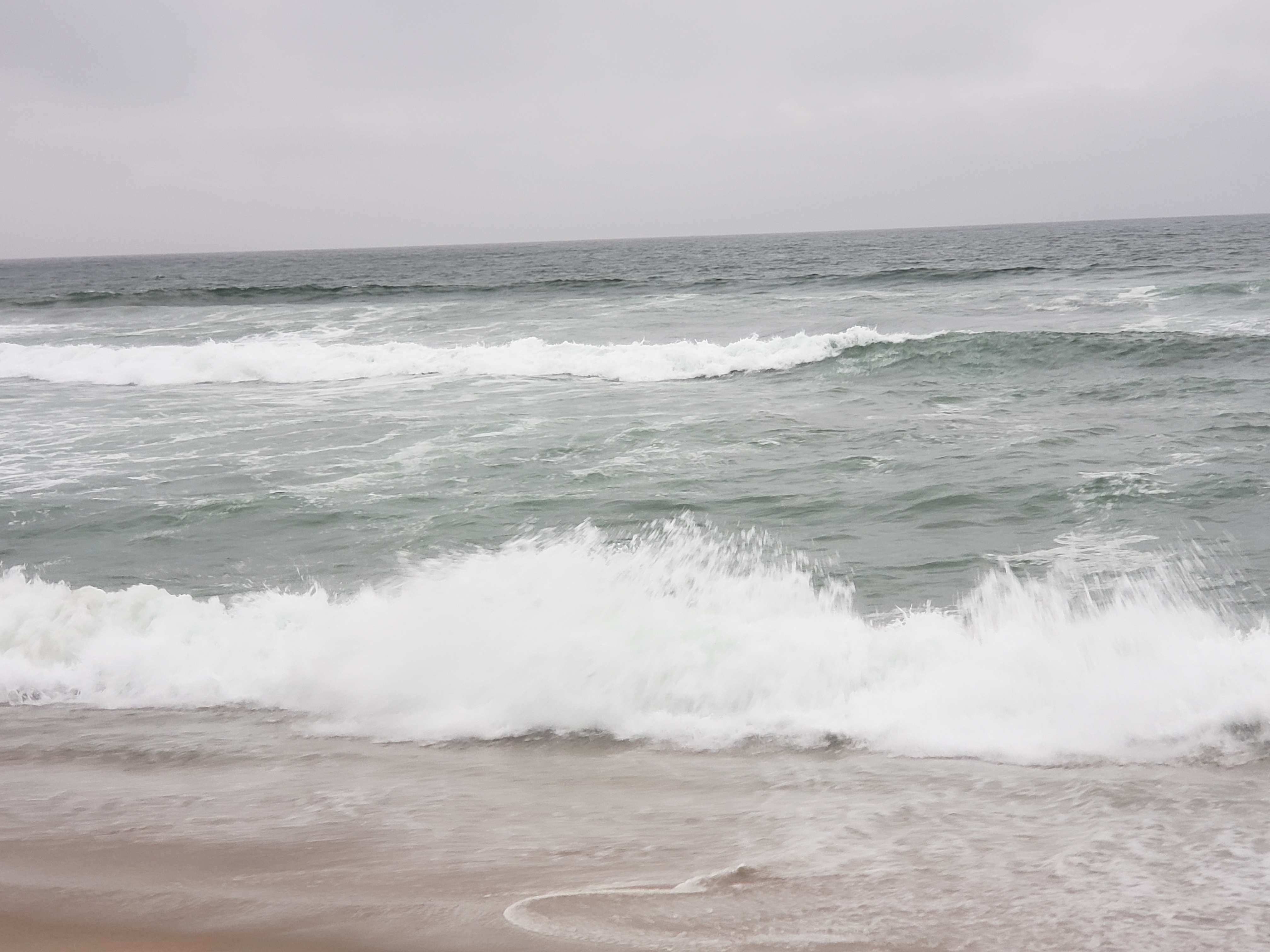 Then in the evening, I am off to the beach. Only a thirty minute drive and I am arriving! A short, sandy path lined with small but pretty flowers takes me to the beach. And there is the ocean in all its magnificent splendor! The waves roll in and crash onto the beach. Then it hits you. There’s plenty of water here. Too bad it’s all salt water. I know desalination plants exist so maybe there’s an idea for California to pursue. Or maybe not…