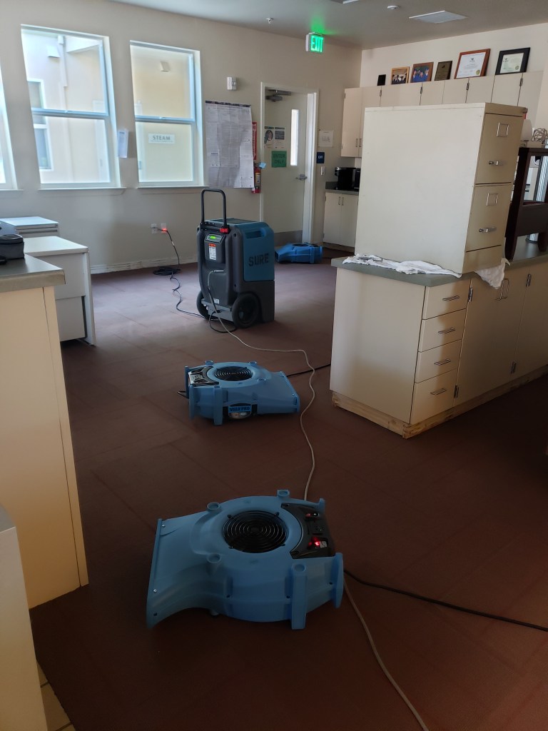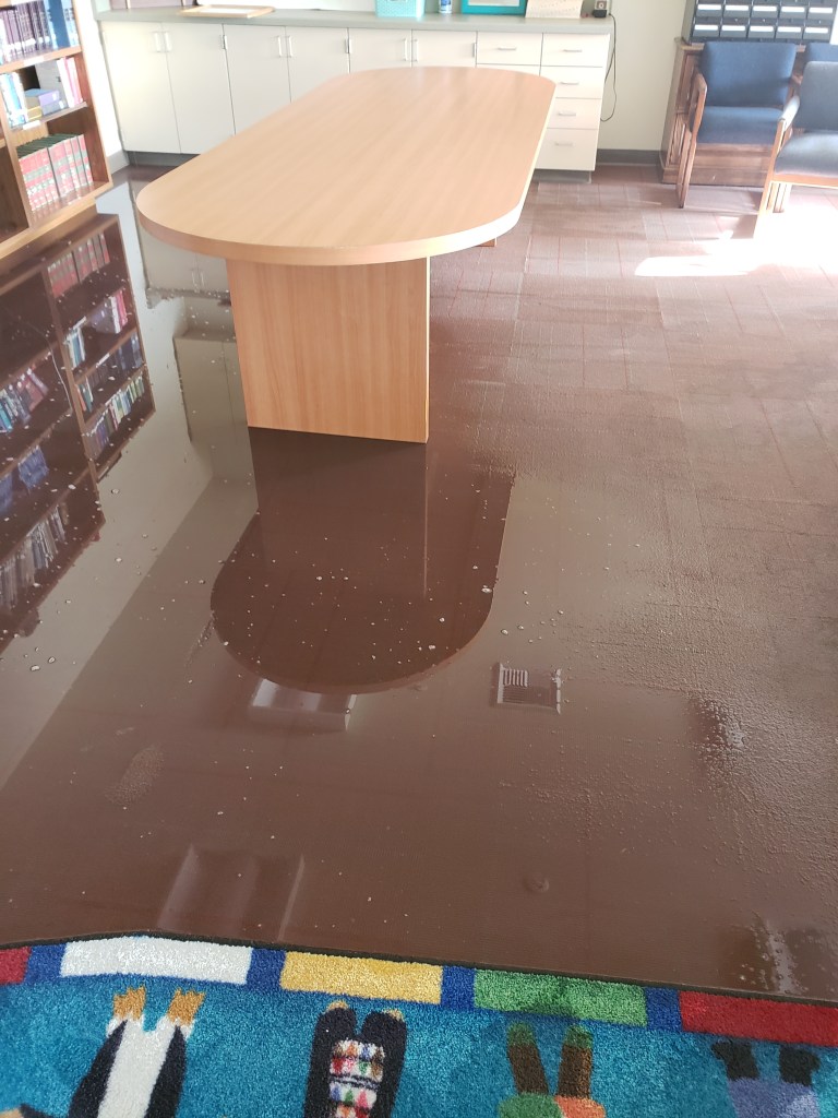 In just a few minutes I was on my way to school. There had been about 2 inches of water covering every floor space in this building. Two unlikely things had occured at the same time overnight causing the flood. Volunteers with wet-dry vacs were already sucking up the water. A quick meeting and it was decided to hire a restoration company. Within an hour, the restorers were there and they had all the proper equipment for such a major job. It took them most of the morning just to get all the water out of the east building of the school. Even now dehumidifiers and specialized fans are working to dry the floors and walls.