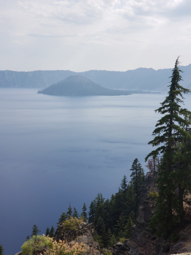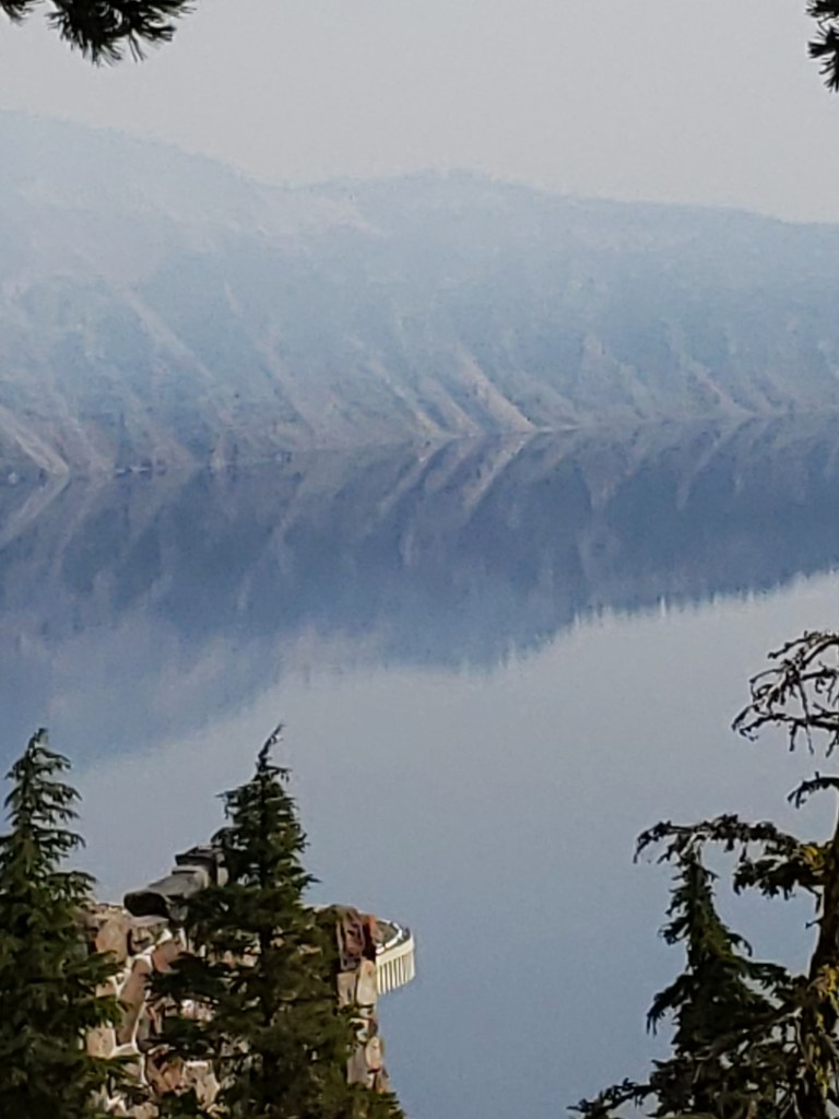 There is a sign as you drive into Crater Lake National Park that says, “Falling may cause injury or death.” Whether you are here at Crater Lake or wherever that is very true. If you have ever been to Oregon, and this is my first time, you find out they do not use many words. At least not on their signs. There are more signs and notices telling you not to climb over the stone walls, too, but some people still do. One slip and it would be curtains in many places.