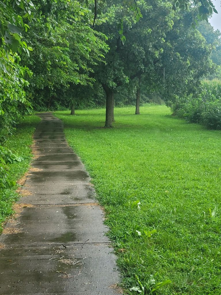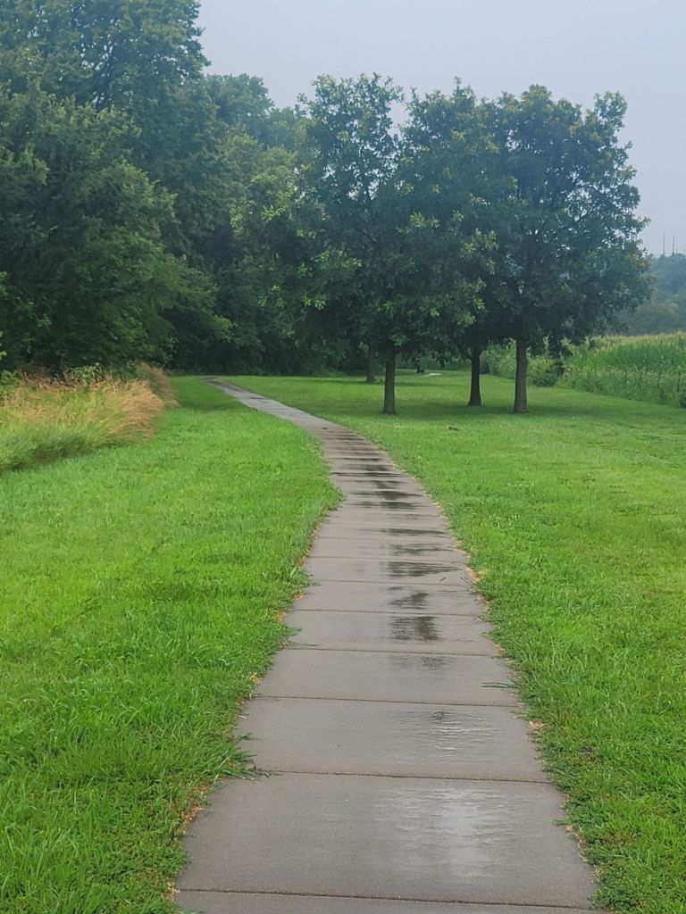 I finished one way and turned around to head back. The rain picked up. I walked a little faster. I did see a cardinal in the trees. But not much else moving. A few minutes later was driving on my way back home.